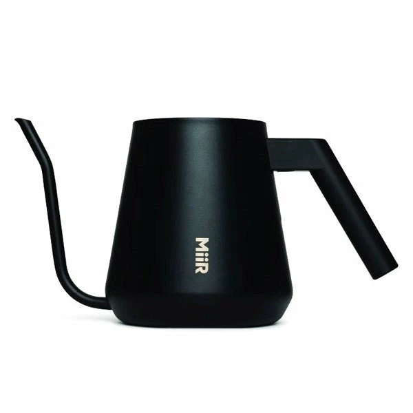 The MiiR Pour Over Kettle showcases an internal flow reducer and a precision spout for a steady, controlled, and smooth pour-over experience. It features a built-in, large easy-read thermometer that is carefully housed in the lid for an accurate temperature reading.