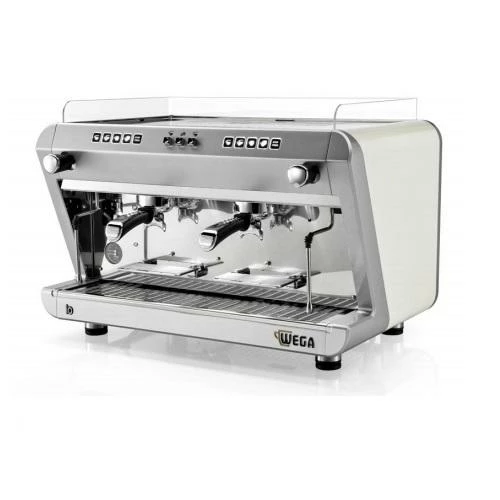 - A hot water dispenser and two manual buttons for coffee dispensing.